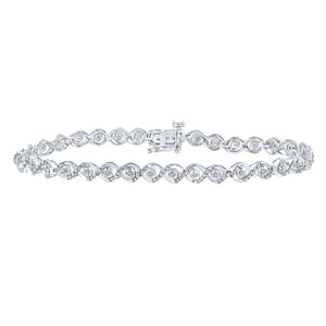 Sterling Silver Womens Round Diamond Fashion Bracelet 1/10 Cttw