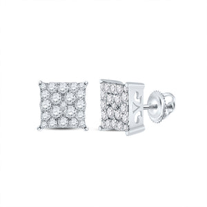 10kt White Gold Womens Round Diamond Square Earrings 3/4 Cttw
