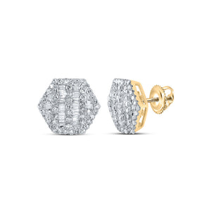 10kt Yellow Gold Womens Baguette Diamond Hexagon Cluster Earrings 5/8 Cttw