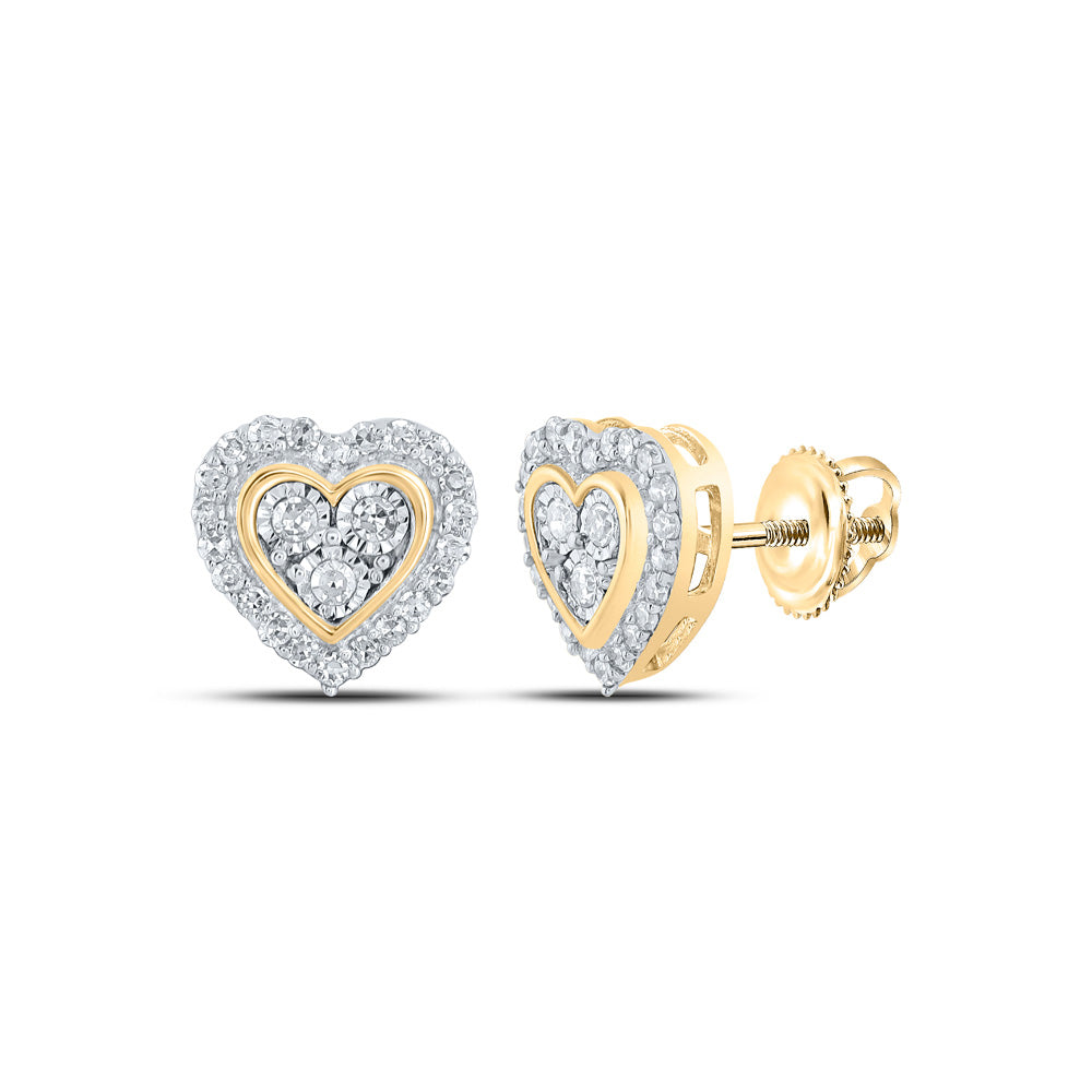 10kt Yellow Gold Womens Round Diamond Heart Earrings 1/5 Cttw