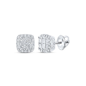 14kt White Gold Womens Princess Diamond Square Earrings 1 Cttw