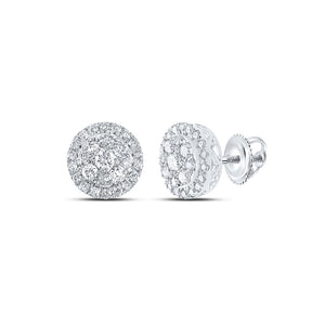 14kt White Gold Womens Round Diamond Cluster Earrings 1 Cttw