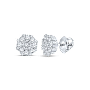 14kt White Gold Womens Round Diamond Cluster Earrings 5/8 Cttw