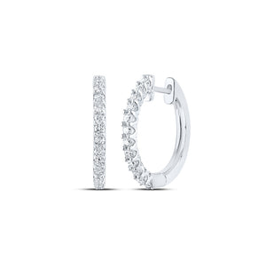 14kt White Gold Womens Round Diamond Inside Outside Hoop Earrings 1/2 Cttw