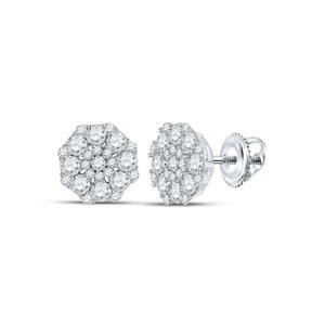 14kt White Gold Womens Round Diamond Octagon Cluster Earrings 1-1/4 Cttw