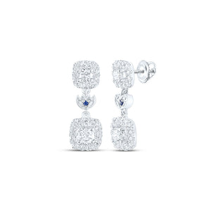14kt White Gold Womens Round Diamond Square Dangle Earrings 1 Cttw