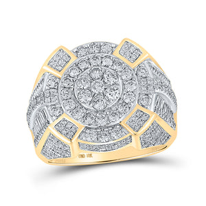 10kt Yellow Gold Mens Round Diamond Cluster Ring 2-3/8 Cttw