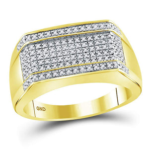 10kt Yellow Gold Mens Round Diamond Rectangle Band Ring 1/5 Cttw