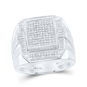 Sterling Silver Mens Round Diamond Rectangle Fashion Ring 1/2 Cttw