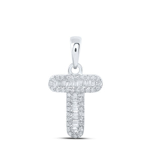 10kt White Gold Womens Baguette Diamond T Initial Letter Pendant 1/4 Cttw