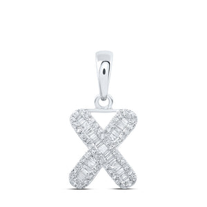 10kt White Gold Womens Baguette Diamond X Initial Letter Pendant 1/3 Cttw