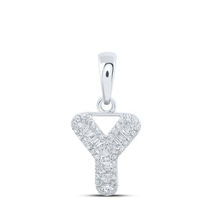 10kt White Gold Womens Baguette Diamond Y Initial Letter Pendant 1/5 Cttw