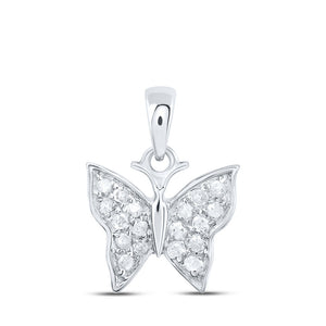 10kt White Gold Womens Round Diamond Butterfly Pendant 1/20 Cttw