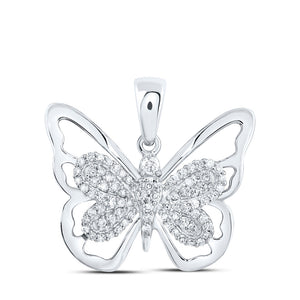 10kt White Gold Womens Round Diamond Butterfly Pendant 1/5 Cttw
