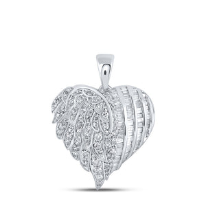 10kt White Gold Womens Round Diamond Heart Pendant 7/8 Cttw