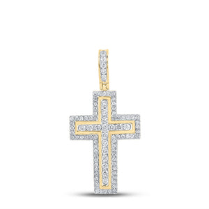 10kt Yellow Gold Womens Round Diamond Cross Pendant 1 Cttw