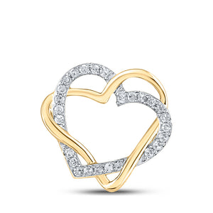 10kt Yellow Gold Womens Round Diamond Double Heart Pendant 1/4 Cttw