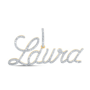 10kt Yellow Gold Womens Round Diamond LAURA Name Pendant 3/4 Cttw