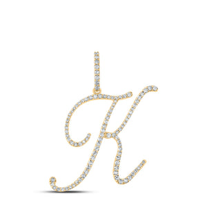 14kt Yellow Gold Womens Round Diamond K Initial Letter Pendant 1/2 Cttw