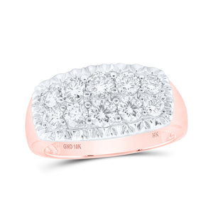 10kt Rose Gold Mens Round Diamond Cluster Band Ring 2 Cttw