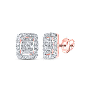 10kt Rose Gold Womens Baguette Diamond Rectangle Cluster Earrings 1 Cttw