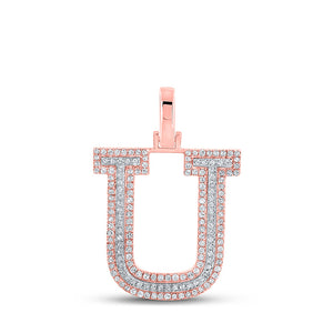 10kt Two-tone Gold Mens Round Diamond U Initial Letter Pendant 1/2 Cttw