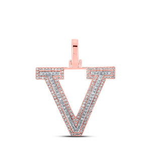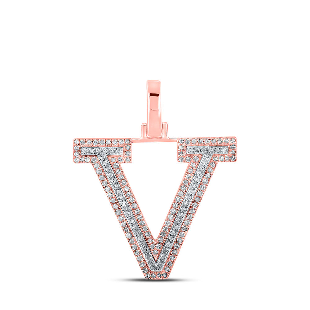 10kt Two-tone Gold Mens Round Diamond V Initial Letter Pendant 3/8 Cttw