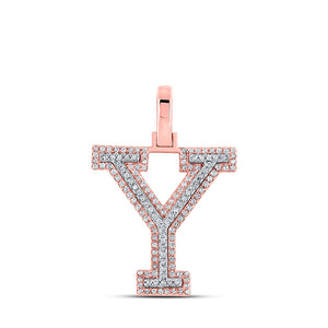 10kt Two-tone Gold Mens Round Diamond Y Initial Letter Pendant 3/8 Cttw