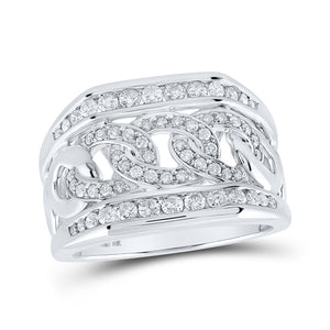10kt White Gold Mens Round Diamond Curb Link Band Ring 1 Cttw