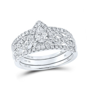 10kt White Gold Pear Diamond 3-Piece Bridal Wedding Ring Band Set 7/8 Cttw