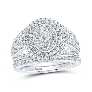 10kt White Gold Round Diamond Oval-shape Bridal Wedding Ring Band Set 1-1/5 Cttw
