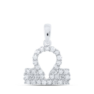 10kt White Gold Womens Round Diamond Zodiac Libra Sign Fashion Pendant 1/3 Cttw