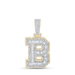 10kt Yellow Gold Mens Baguette Diamond B Initial Letter Charm Pendant 3/4 Cttw
