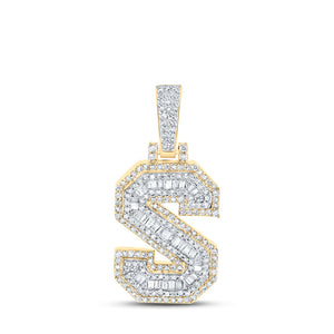 10kt Yellow Gold Mens Baguette Diamond S Initial Letter Charm Pendant 1/2 Cttw