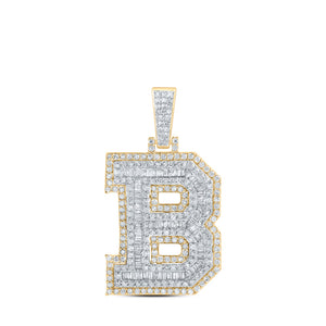 10kt Yellow Gold Mens Round Diamond B Initial Letter Charm Pendant 1-3/8 Cttw