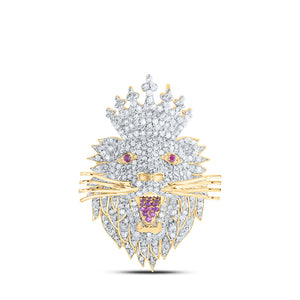10kt Yellow Gold Mens Round Diamond Lion Face Crown Charm Pendant 1 Cttw