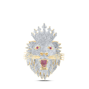 10kt Yellow Gold Mens Round Diamond Lion Face Crown Charm Pendant 5-7/8 Cttw