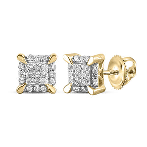 10kt Yellow Gold Mens Round Diamond Square Earrings 1/20 Cttw