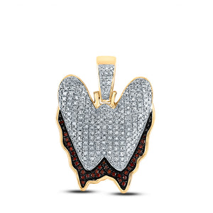10kt Yellow Gold Mens Round Red Color Enhanced Diamond Letter W Blood Charm Pendant 5/8 Cttw
