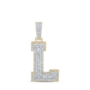 14kt Two-tone Gold Mens Baguette Diamond L Initial Letter Charm Pendant 1-1/2 Cttw