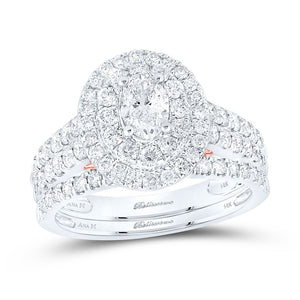 14kt Two-tone Gold Oval Diamond Halo Bridal Wedding Ring Band Set 2 Cttw