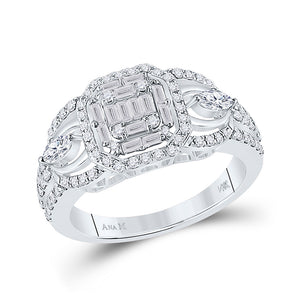 14kt White Gold Baguette Diamond Square Bridal Wedding Engagement Ring 3/4 Cttw
