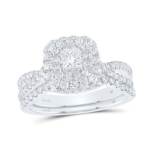 14kt White Gold Pear Diamond Halo Bridal Wedding Ring Band Set 1 Cttw
