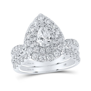 14kt White Gold Pear Diamond Halo Bridal Wedding Ring Band Set 2 Cttw
