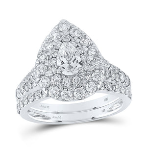 14kt White Gold Pear Diamond Halo Bridal Wedding Ring Band Set 2 Cttw