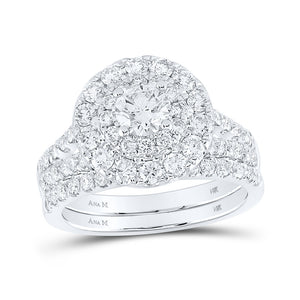 14kt White Gold Round Diamond Halo Bridal Wedding Ring Band Set 2 Cttw
