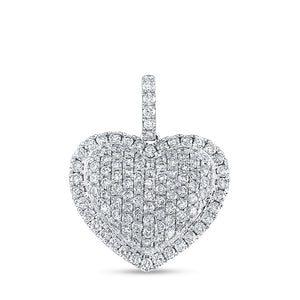 14kt White Gold Womens Round Diamond Heart Pendant 1-1/4 Cttw