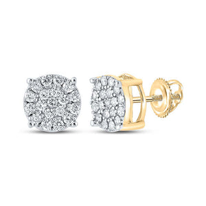 14kt Yellow Gold Mens Round Diamond Cluster Earrings 3/8 Cttw