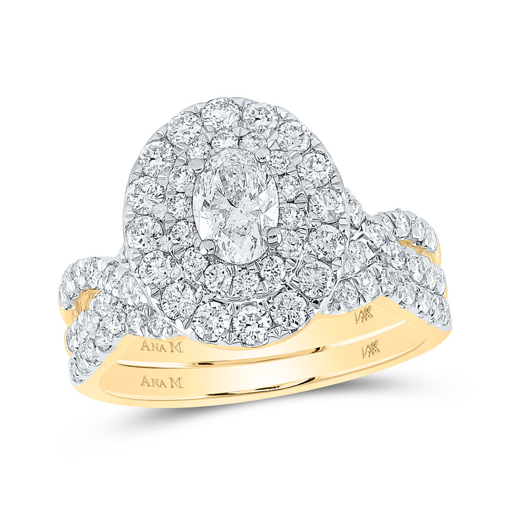 14kt Yellow Gold Oval Diamond Halo Bridal Wedding Ring Band Set 2 Cttw