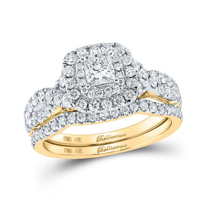 14kt Yellow Gold Princess Diamond Halo Bridal Wedding Ring Band Set 1-1/4 Cttw